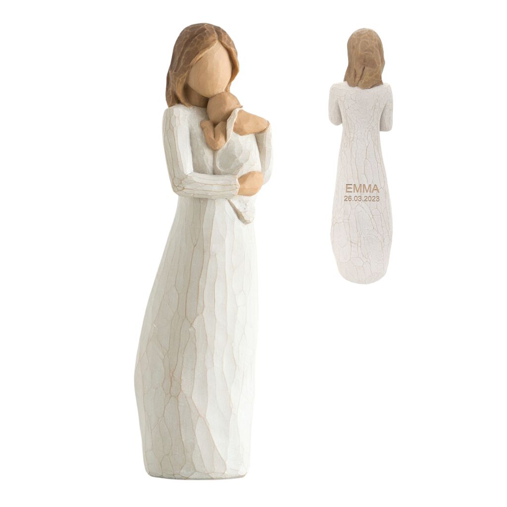 Få indgraveret en personlig tekst på bagsiden af Willow Tree figuren helt gratis.