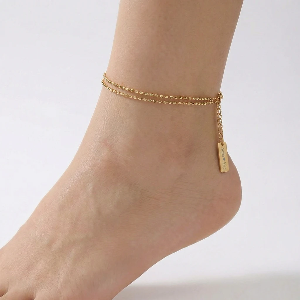 Elegant og diskret dobbelt ankelkæde i forgyldt sølv fra Scrouples – perfekt til at tilføje et strejf af luksus til din hverdag.