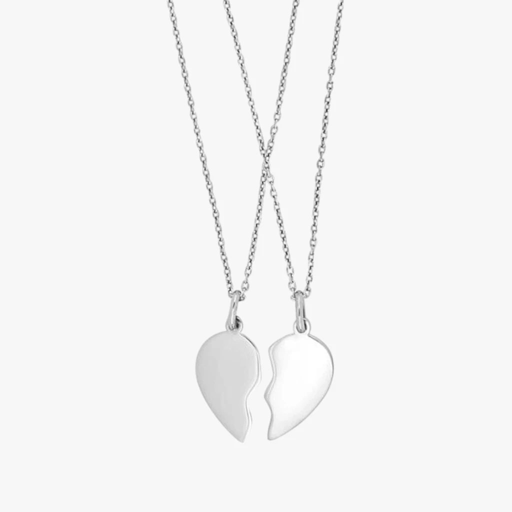 Veninde knækhjerte halskæde i Sølv med gratis gravering på hvert hjerte.