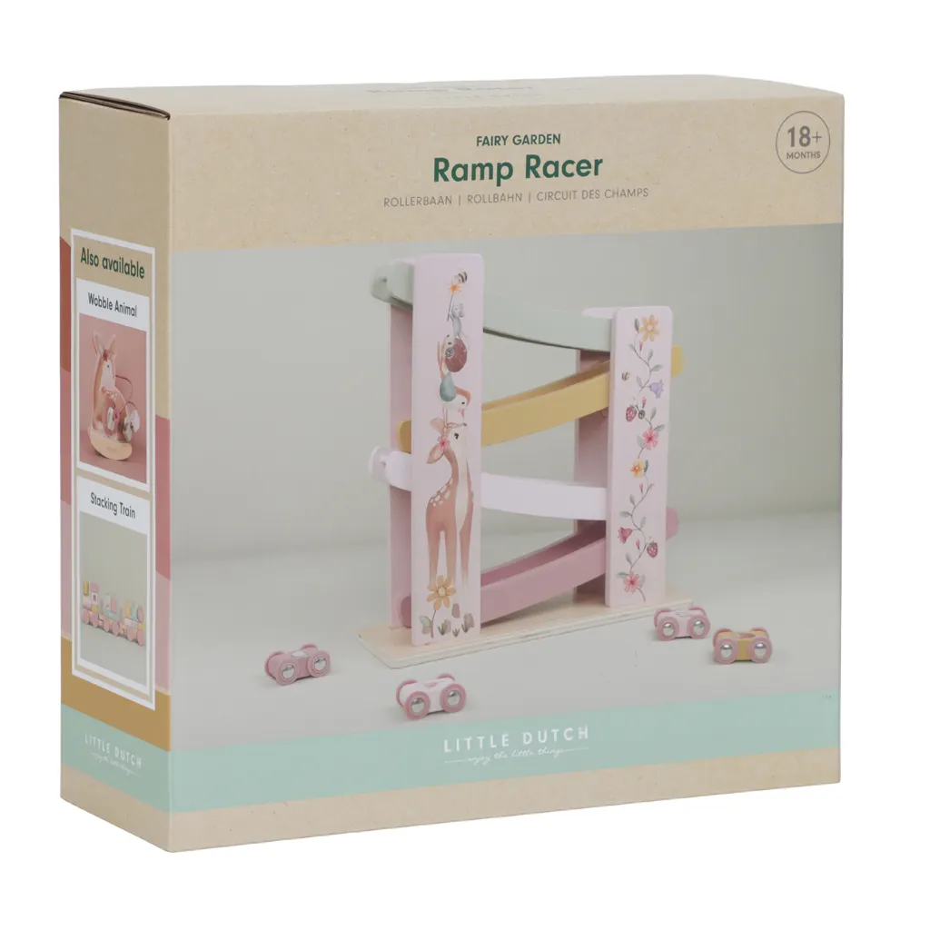 Tæl ned fra 3, og lad den magiske rejse begynde! Denne Bilbane i træ har fire køretøjer, som hver især er udsmykket med charmerende tegninger af skovens dyr. Se med begejstring, når pindsvinet, sommerfuglen, mariehønen og fuglen ræser ned.