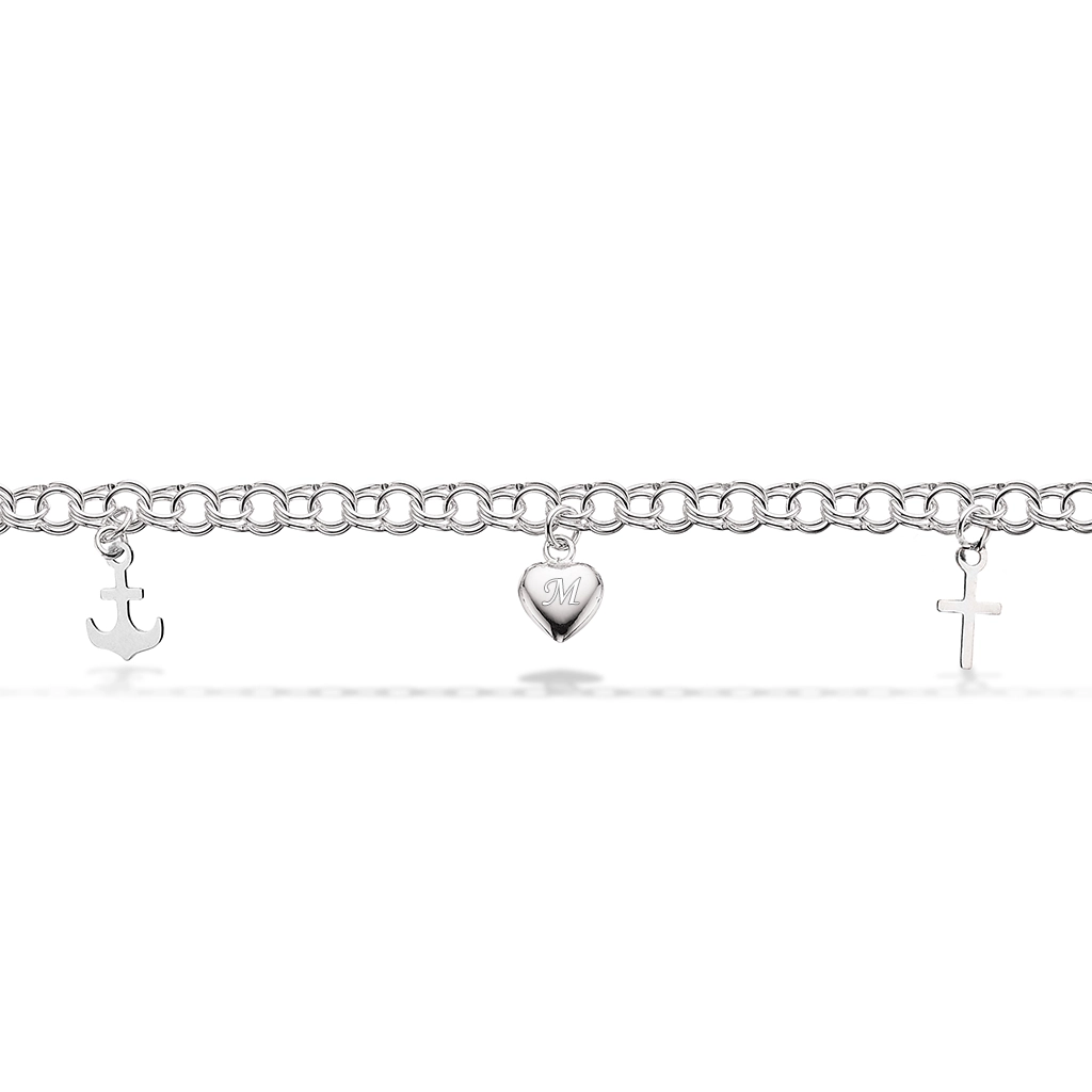 Sødt børnearmbånd med tro-håb-kærlighed med plads til en Bogstavsgravering på hjertet.