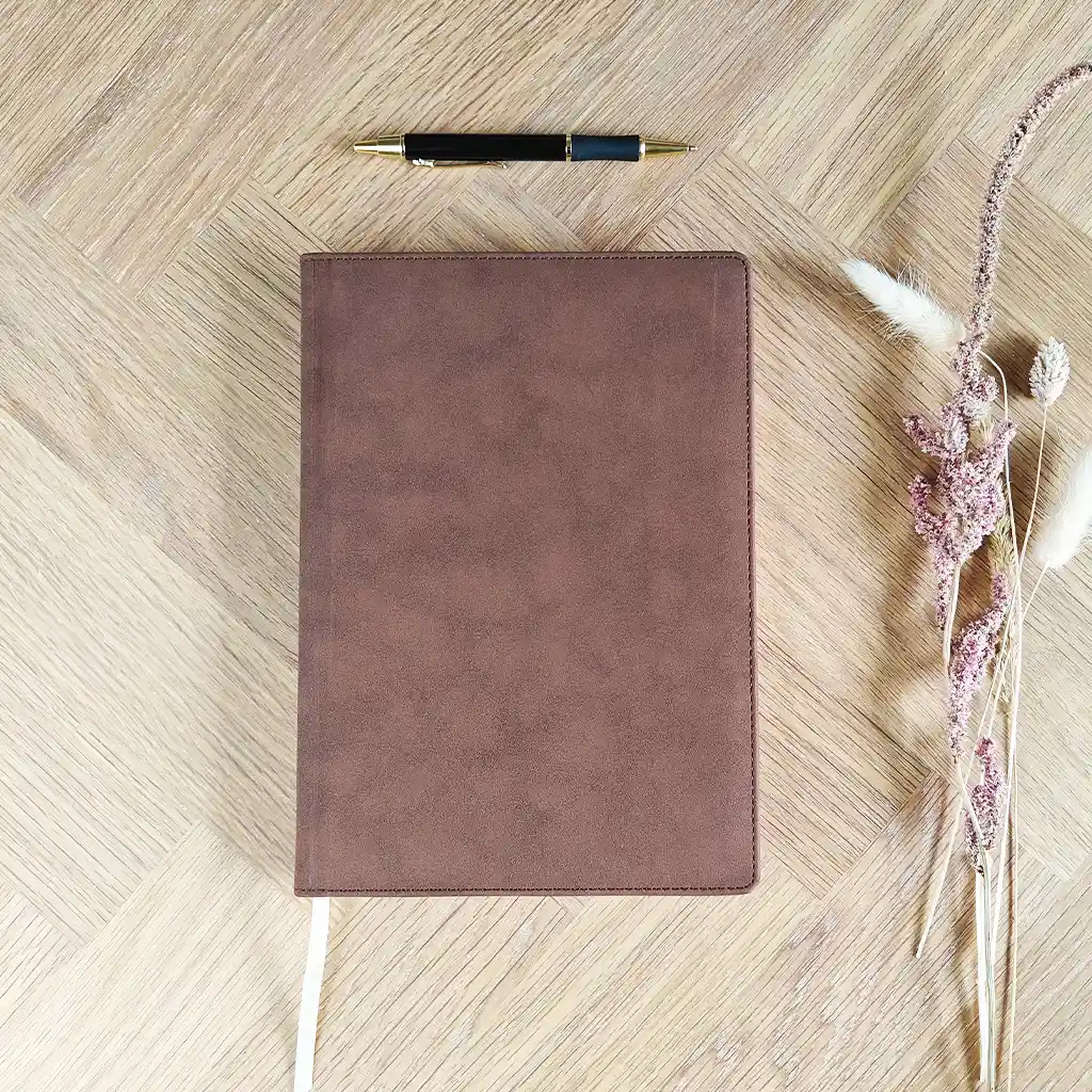 Gæstebogen er fremstillet i et stilfuldt og lækkert PU læder, som føles som ruskind.