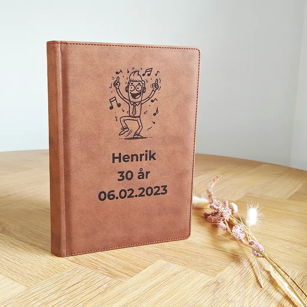 Vælg det design du ønsker, og udfyld felterne med den tekst du ønsker graveret på bogen, også klarer vi resten.