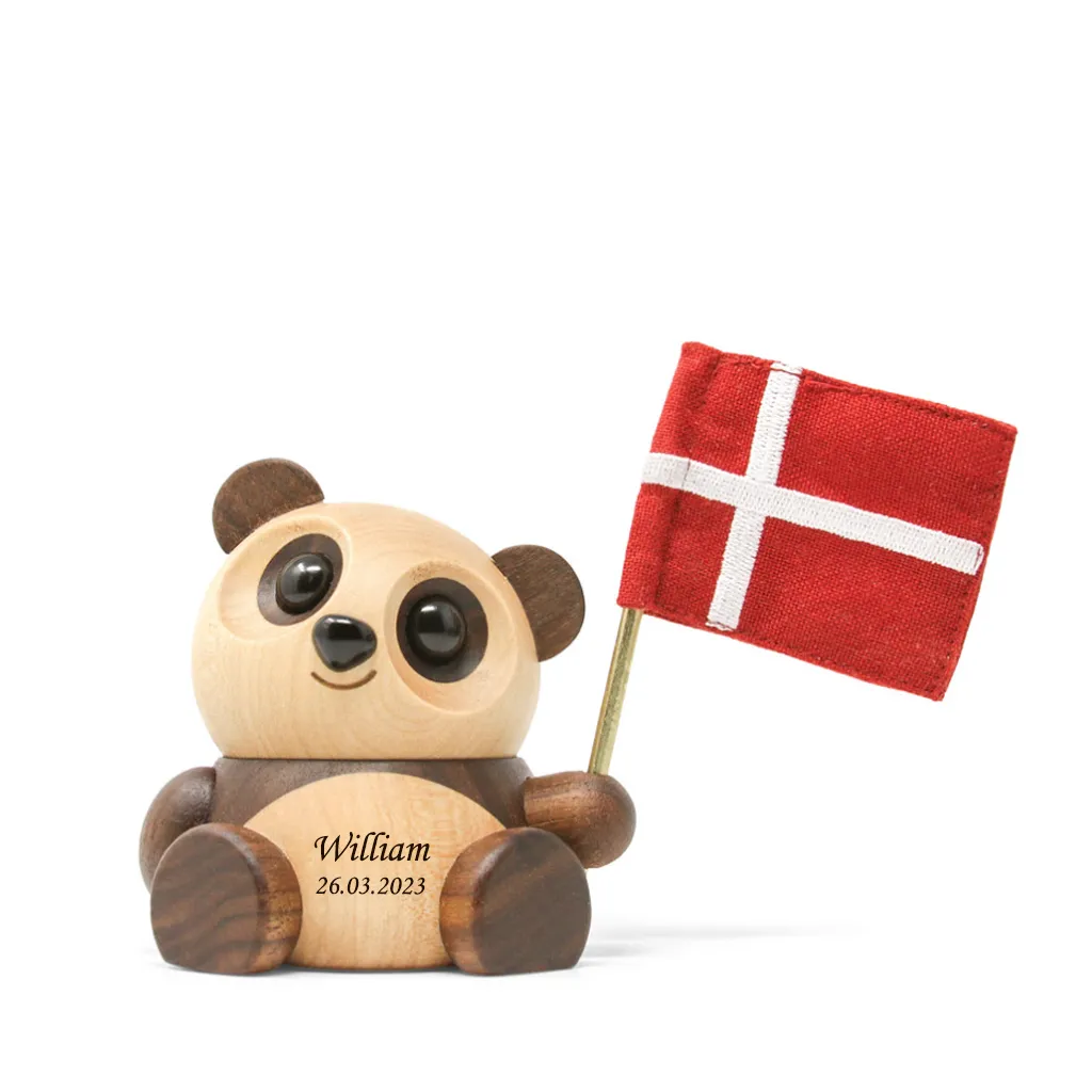 Som en ekstra detalje medfølger der både et dansk flag og en lille panda stav, som pandaen kan holde.