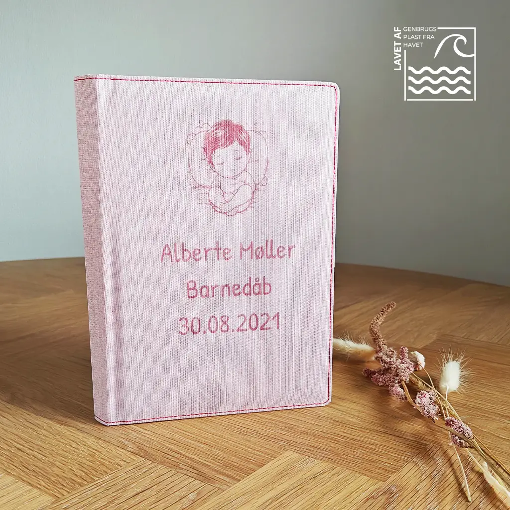 Vores Coral og Sky blue gæstebøgers cover er fremstillet af genbrugsplast fra havet.