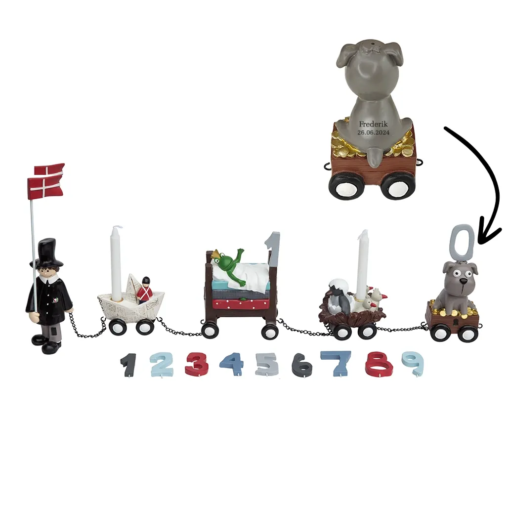 Dette fødselsdagstog er ikke kun en fantastisk dekoration på fødselsdagsbordet, men også en vidunderlig gave, der vil bringe glæde i mange år. Som en ekstra personlig detalje kan hundens vogn indgraveres med barnets navn og fødselsdato, hvilket gør toget til en mindeværdig del af fødselsdagstraditionerne.