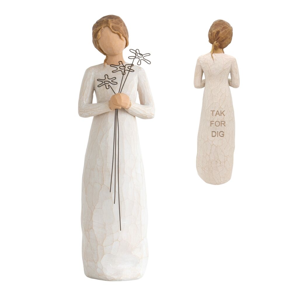 Få indgraveret en personlig tekst på bagsiden af Willow Tree figuren helt gratis.