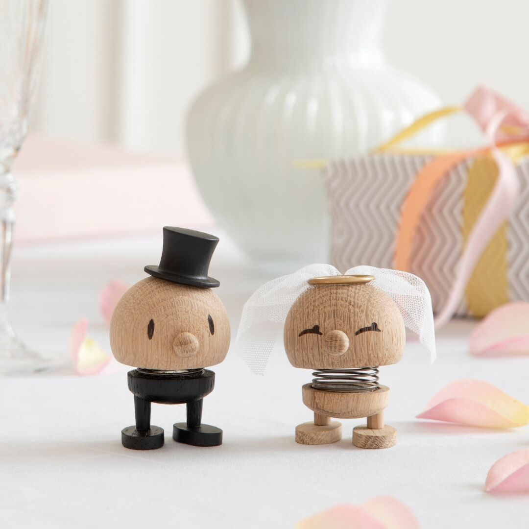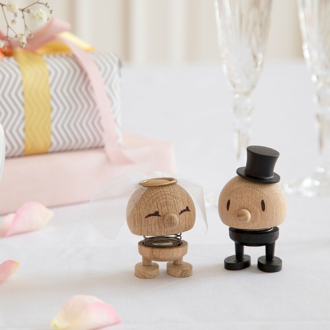 Kærlighed gør glad, og når vi gifter os, siger vi ja til at dele glæden. Og hvorfor ikke dele et af livets største og gladeste øjeblikke med denne søde Hoptimist-Brud og Hoptimist-Brudgom i træ-udgave.