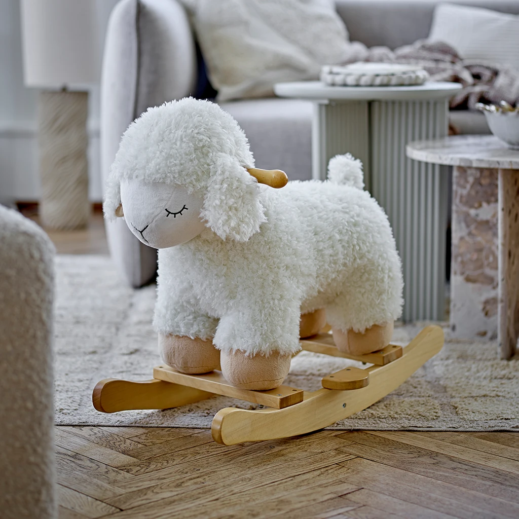 Denne charmerende gyngehest fra Bloomingville er designet som et blødt og sødt lam, der hurtigt bliver barnets nye favorit. Med sit hyggelige udtryk, bløde plys og stabile træstel er den både sikker og behagelig at gynge på. Perfekt til leg og motorisk udvikling, samtidig med at den pynter smukt på børneværelset.