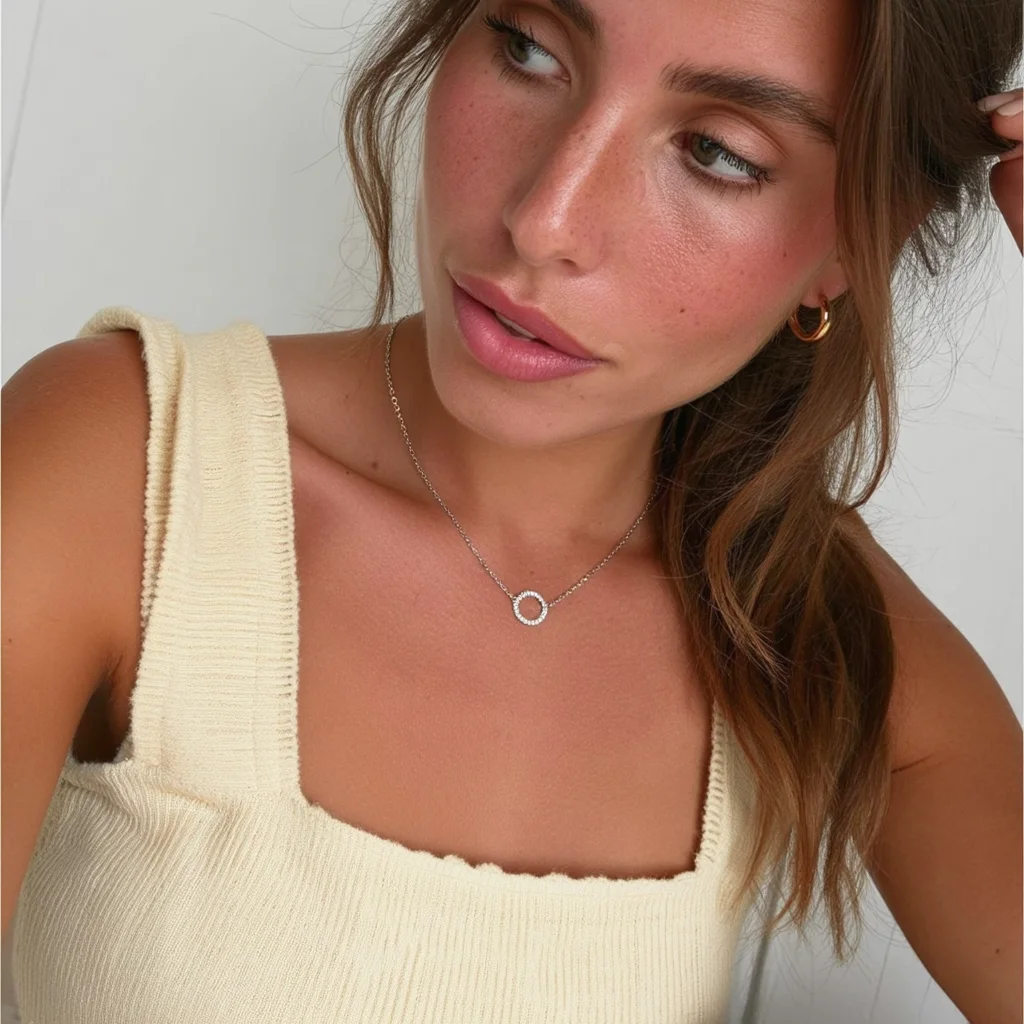 Halo halskæde, Sølvfarvet med zirkonia – En glitrende cirkel af kærlighed
