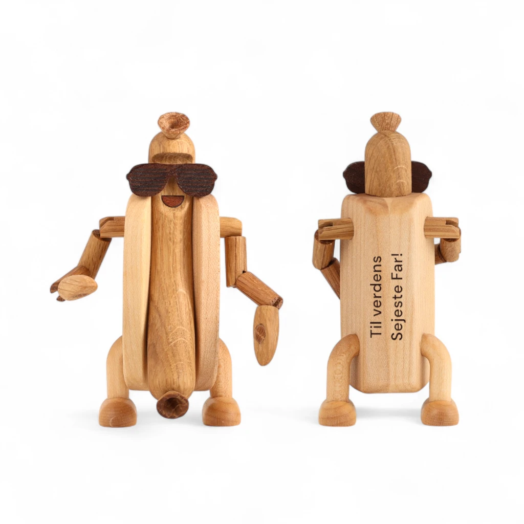 Hans bevægelige arme gør ham klar til at fejre livet med et high-five eller en sej dans. Håndlavet i træ og designet med humor og personlighed er han den perfekte gave til madelskeren, designentusiasten eller bare en, der elsker en god portion sjov i hverdagen.