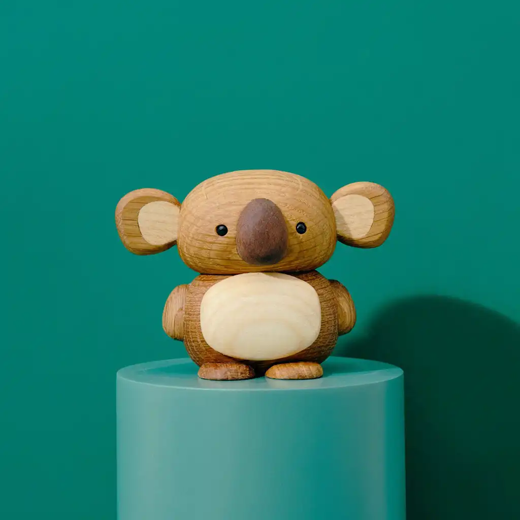 Sig hej til Kuzi, den sødeste lille trækoala fra Lucie Kaas, som med sit milde udtryk og runde former er skabt til at sprede glæde og varme. Kuzi er håndlavet i smukt egetræ med fine lyse detaljer, der fremhæver dens nuttede mave og store ører. Med sit rolige blik og bløde udstråling er Kuzi en oplagt gave til både store og små.