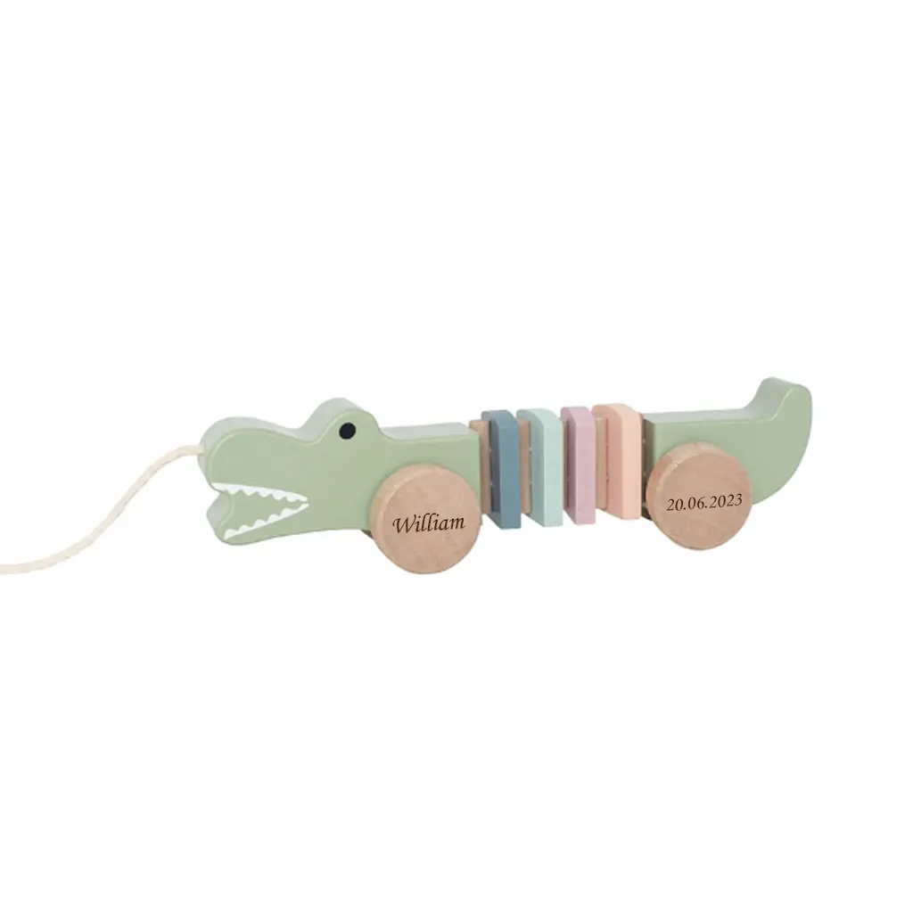 Træk i snoren, og tag på eventyr sammen med Krokodillen Croco! Trækdyret er lavet af holdbart træ og bliver aldrig trætte af at lege. Det vil opmuntre dit barn til at gå og hjælpe med den motoriske udvikling.