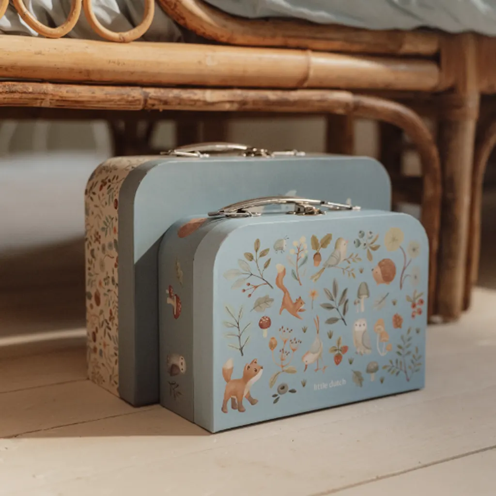 Tag på eventyr med det søde kuffertsæt! Sættet består af to legekufferter i temaet Forest Friends med søde illustrationer af en ræv. Indersiden er trykt med et dejligt print. Begge kufferter har et klassisk metalhåndtag og en lås, perfekt til små opdagelsesrejsende.