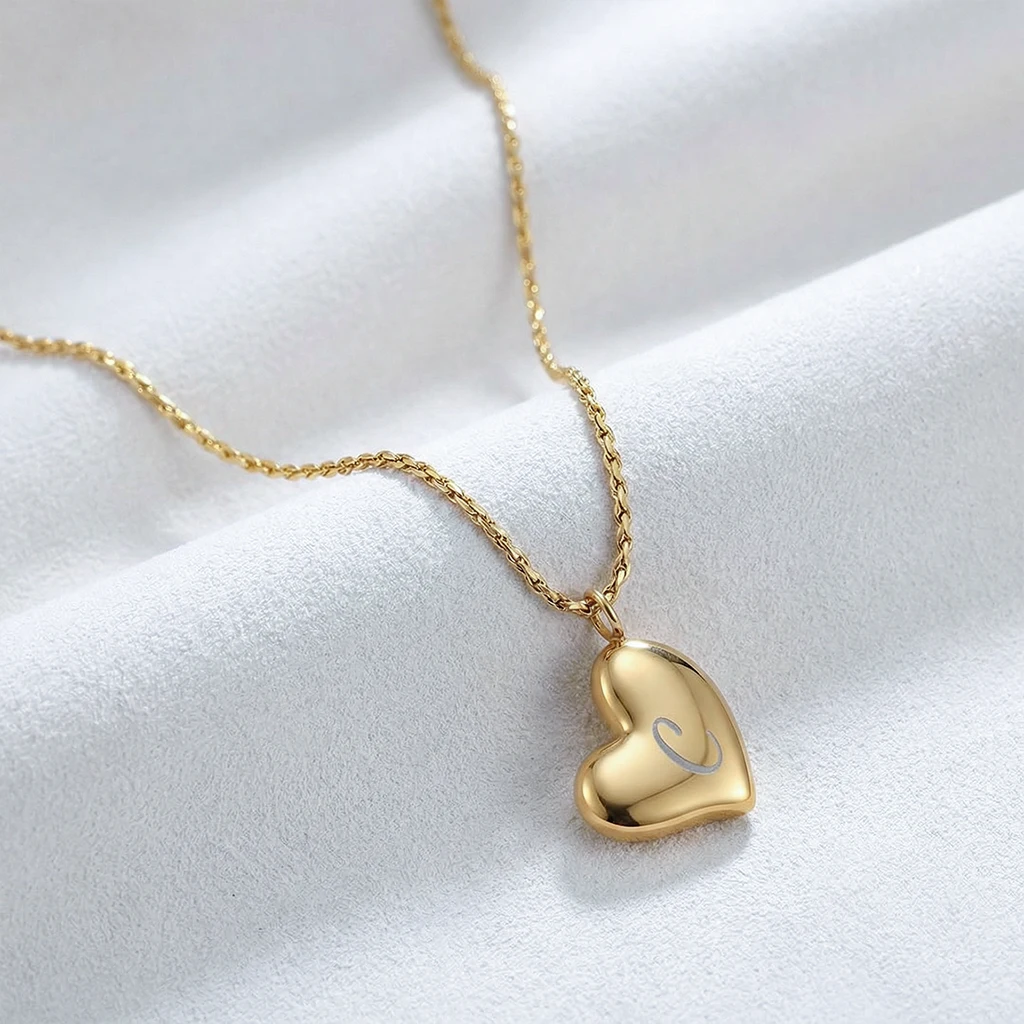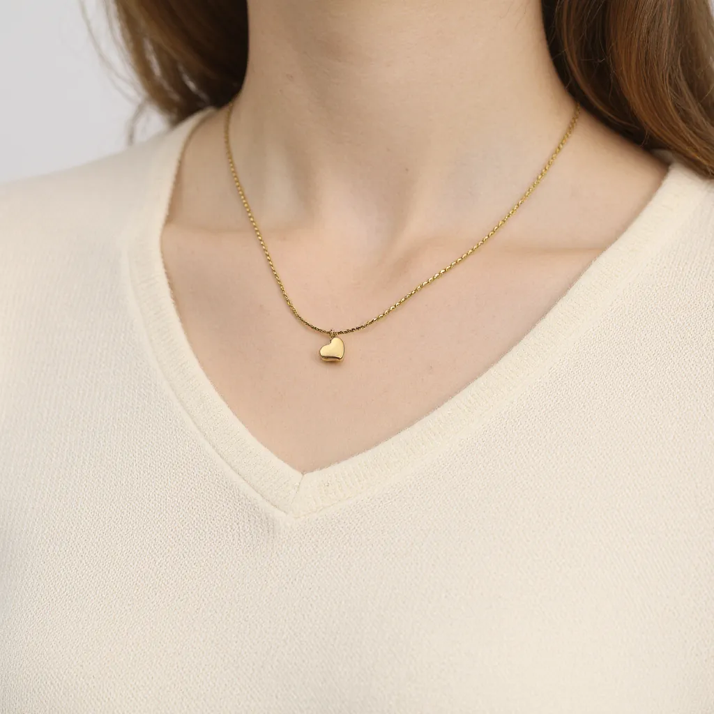 Denne smukke og elegante halskæde med et blødt formet hjertevedhæng er det perfekte smykke til at udtrykke kærlighed, venskab og betydningsfulde bånd. Udført i forgyldt rustfrit stål, kombinerer dette smykke tidløs charme med moderne elegance, hvilket gør det til en uundværlig del af enhver smykkesamling.