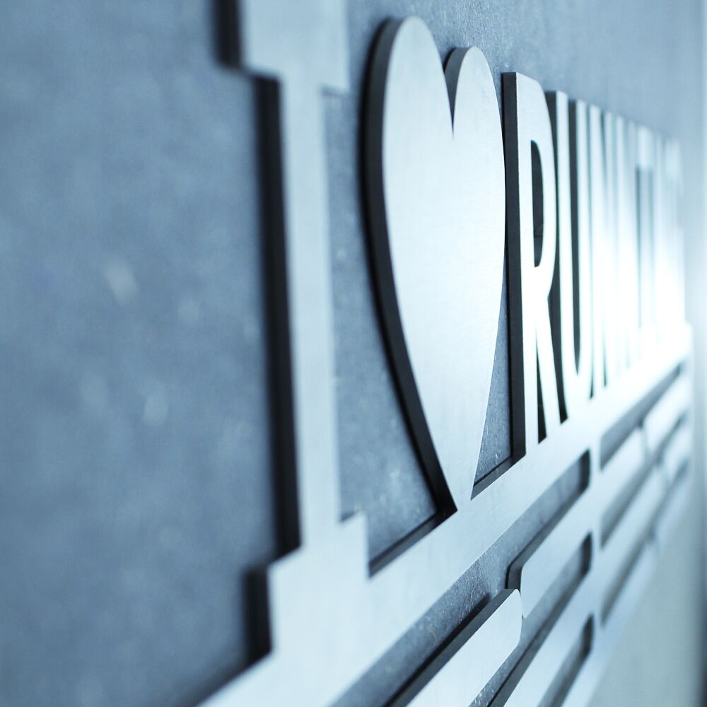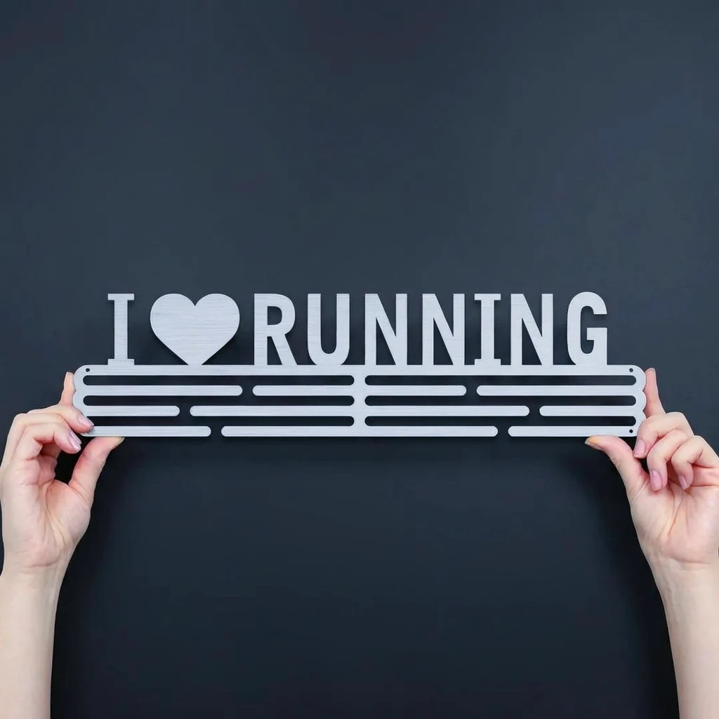 Dette stilfulde medaljeophæng er skabt til løberen, der ønsker at vise sine præstationer frem med stolthed. Med teksten “I ♥ Running” kombinerer ophænget et sporty udtryk med et enkelt og moderne design, der passer perfekt ind i både hjemmet, træningsrummet eller kontoret.