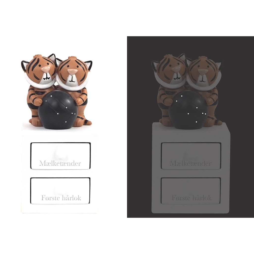 Dette charmerende lille skrin fra Kids by Friis er det perfekte minde til at gemme barnets første tand og hårlok. Selve stjernebilledet på figuren er selvlysende, så det ses når det bliver mørkt.