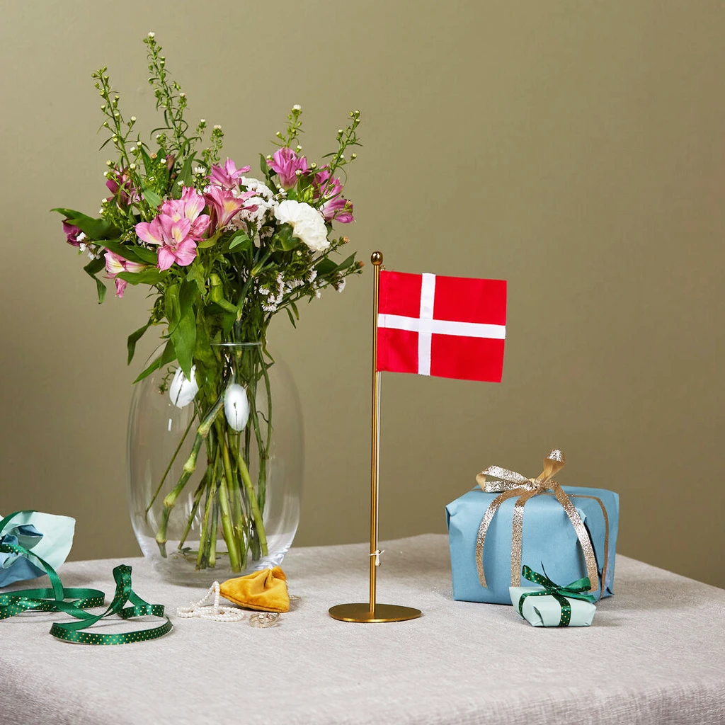 Markér en uforglemmelig dag med det klassiske dåbsflag fra Piet Hein på 35cm – en tidløs og elegant gave, der kan følge barnet gennem hele livet. Flaget leveres med en smuk fod i rustfrit stål og en fin, dansk flagstang, som kan stilles frem ved særlige lejligheder som barnedåb, fødselsdag, konfirmation eller andre mærkedage.