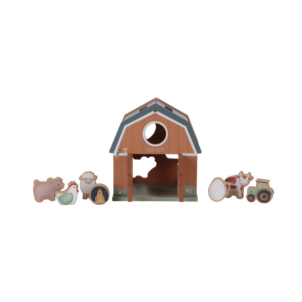Dyrene kan komme ud gennem stalddørene. Puttekassen fremmer hånd-øje-koordination og lærer dit barn at genkende former.