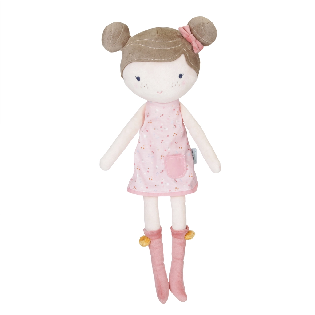 Mød dejlige Rosa. Denne søde plys dukke fra Little Dutch i den fine kjole elsker at bliver krammet. Rosa kan sidde op og nyder at gå en tur med dig i Little Dutch’ trædukkevogn.