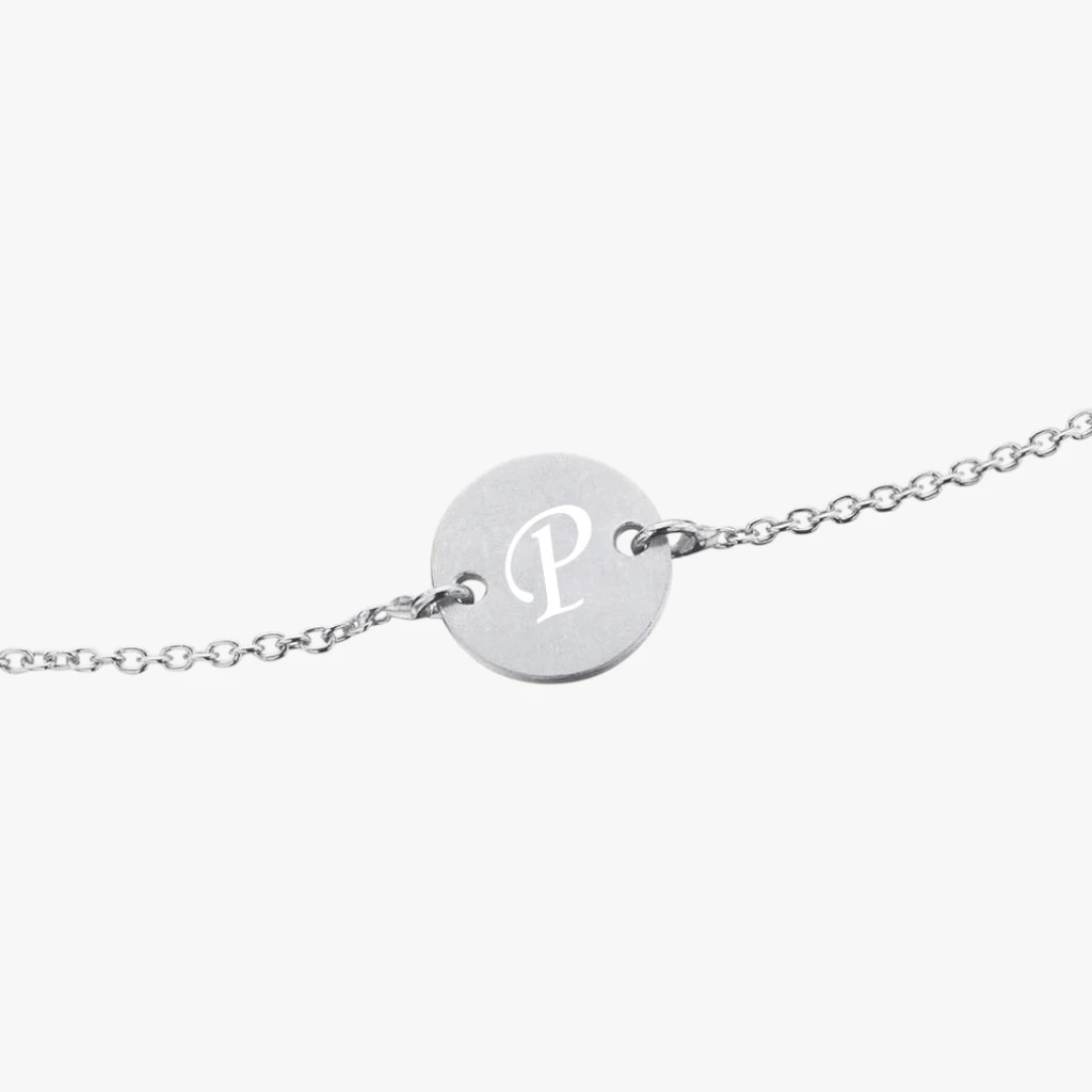 Super sødt Rundt armbånd med et forbogstav indgraveret i det runde vedhæng. Dette Runde armbånd har en diameter på 10 mm og kommer i længden 14,5 cm + 2 cm. Armbåndet bliver indgraveret med valgfrit personlige forbogstav, hvilket kan være forbogstavet på din kæreste, din mor, dit eget, konfirmanden mm.