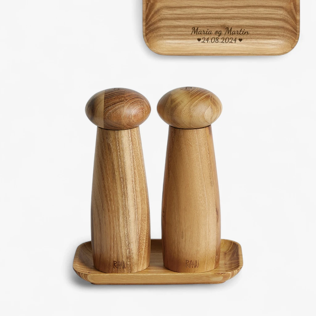 Giv dit spisebord et stilfuldt og funktionelt løft med dette elegante kværnesæt fra Aida RAW. Sættet består af to kværne i smukt teaktræ samt en praktisk bakke, der samler sættet på en dekorativ måde.
