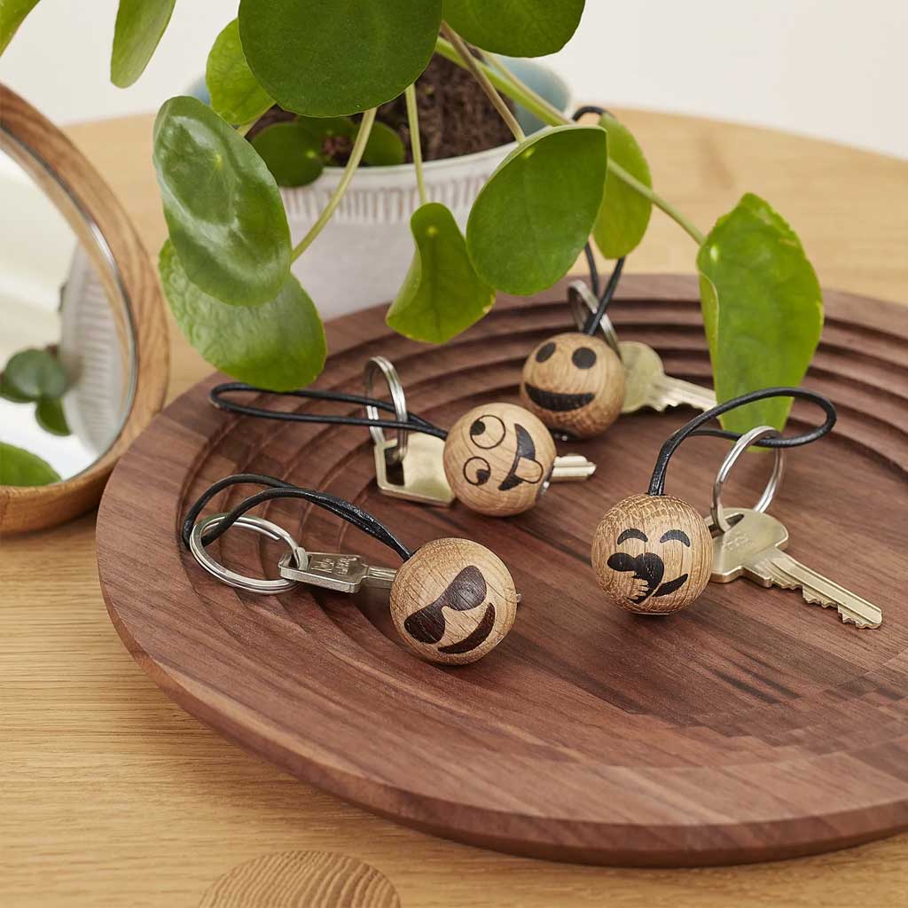 Træet på nøgleringen er lavet i FSC®-certificeret eg, og snoren er lavet i læder.