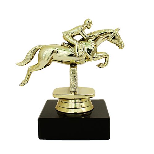 Springhest statuette i guld på marmorsokkel.