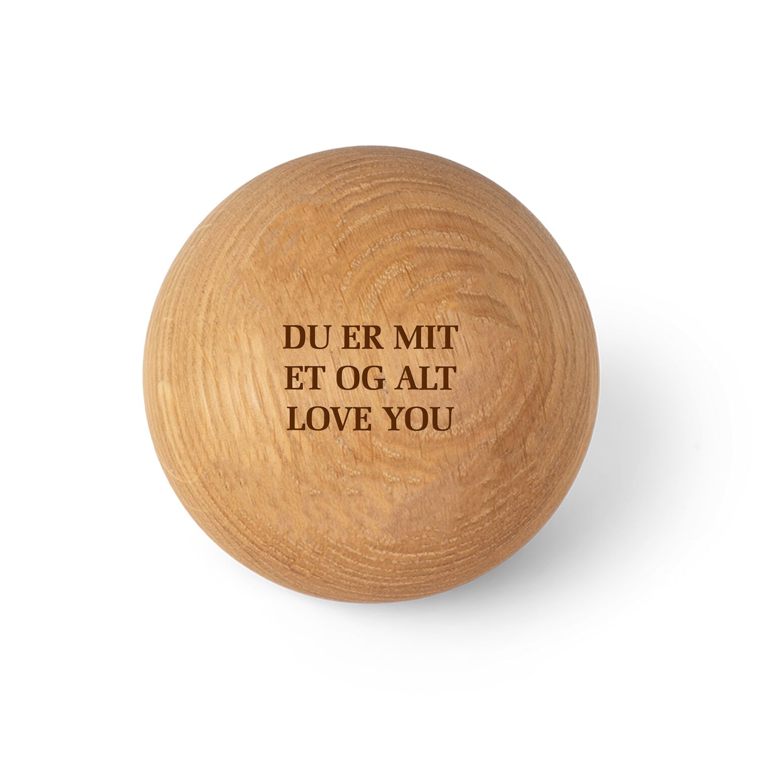 Da træ er et naturmateriale kan der være knaster og områder med lysere eller mørkere træ, og vi kan derfor ikke garantere at graveringen har det præcise udtryk som billedmaterialet viser.