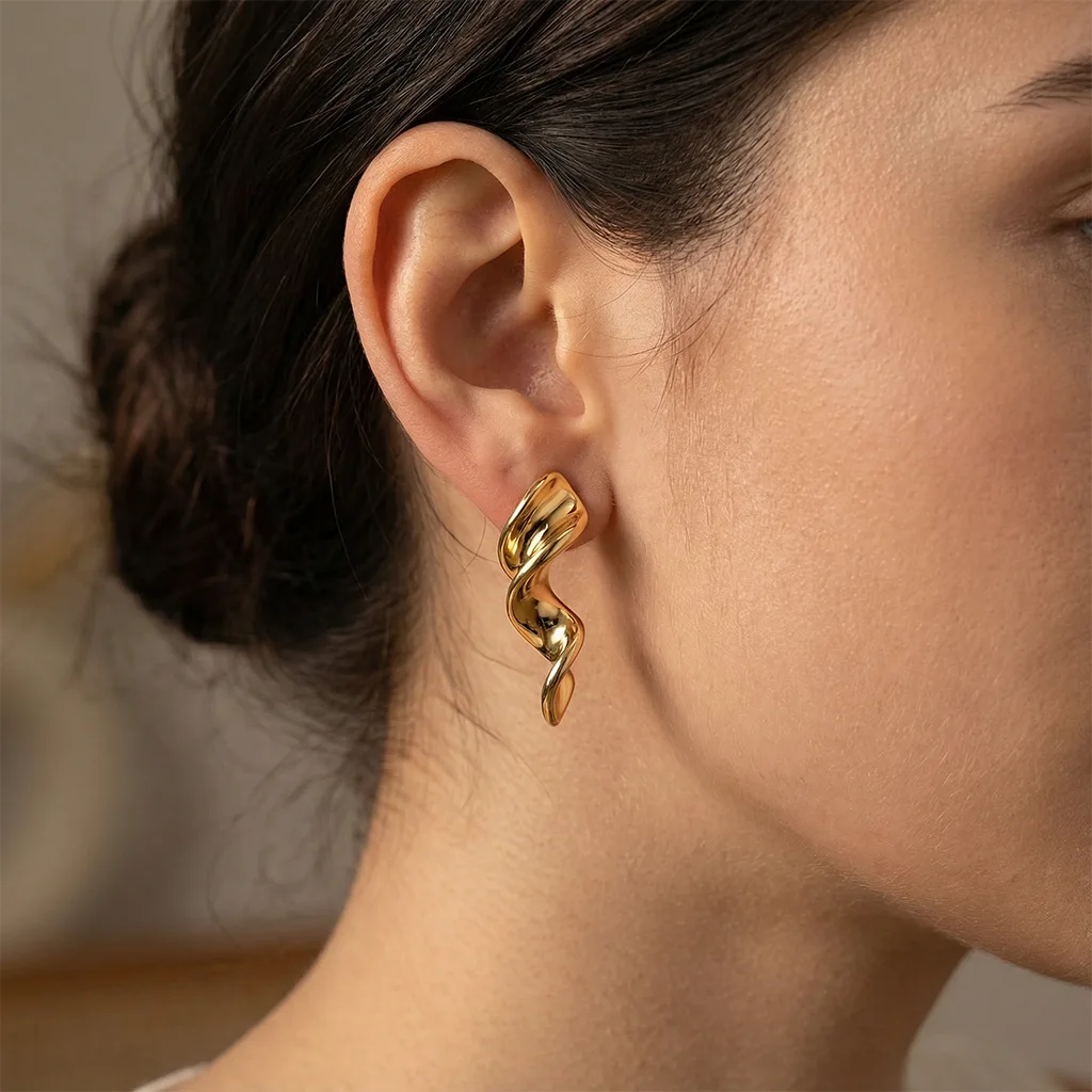 Disse markante øreringe fra CC Jewelries er skabt med fokus på form, bevægelse og moderne elegance. Det bølgende, organiske design giver et skulpturelt udtryk, som smukt reflekterer lyset og tilfører et sofistikeret statement til ethvert look.