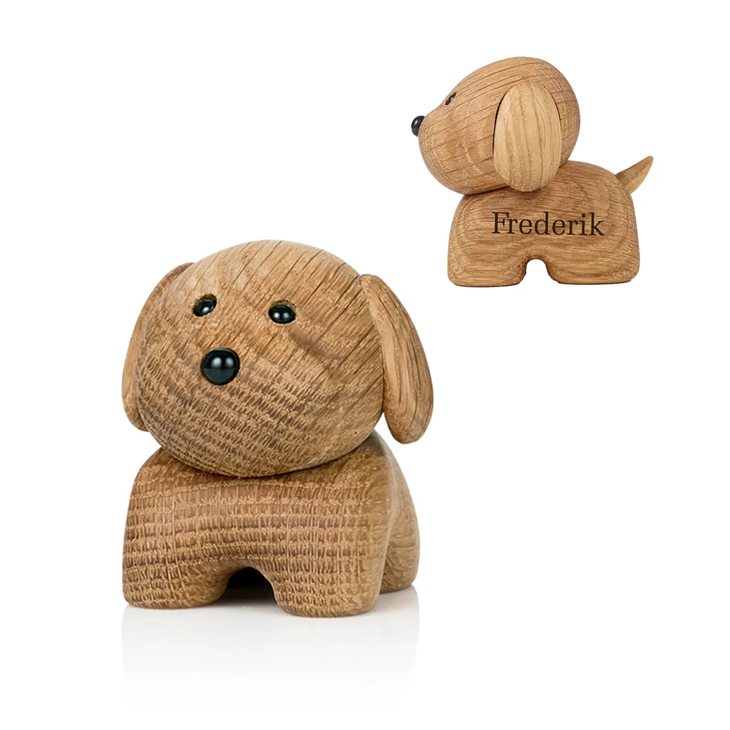 Mød Vuffer – den sødeste lille træhund, der bringer glæde og varme ind i ethvert hjem. Vuffer er fremstillet i smukt, massivt egetræ og designet med kærlige detaljer, som straks giver den personlighed og charme. Med sine store, bløde ører, logrende hale og nysgerrige øjne er Vuffer en tro følgesvend – både som dekoration og som en hjertevarm gave.
