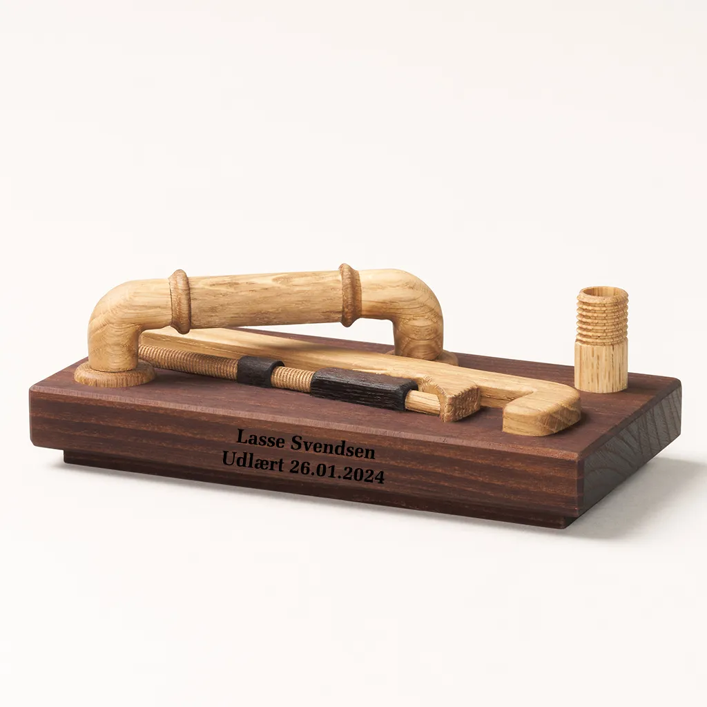 For at fejre den nyuddannede VVS’er, har Maya Soele designet en unik gave, der anerkender de tekniske færdigheder og det dedikerede arbejde, der kendetegner forskellige fag. Gaven består af en detaljeret træfigur, der illustrerer et vigtigt værktøj i mange brancher bla. VVS.